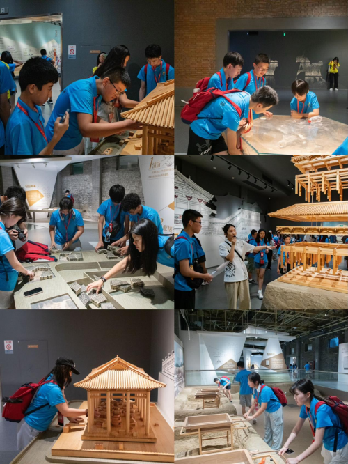 清晨,丹凤门巍峨的轮廓在朝霞中苏醒。上午九时,营员们列队进入世界文化遗产——大明宫国家遗址公园。在公园考古探索中心专业老师的伴游下,青少年们手持精美生动的研学手册和线索卡,化身小小考古家,穿梭于五大主题展厅,通过参观复原场景与微缩模型,学习立体书式的“大明宫考古纪实”图文展板。在寓教于乐的学习氛围里体验以考古全流程为核心的研学之旅,探秘博物馆里的“世纪宝藏”。
