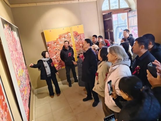 为深入贯彻落实关于保护、传承、弘扬黄河文化的重要指示精神,生动讲好新时代“黄河故事”,推动黄河流域优秀传统文化创造性转化、创新性发展,2025年12月15日,国家艺术基金传播交流推广项目《二十四节气:黄河流域农民画数字艺术展》巡展榆林清涧站展览,在陕西省榆林市清涧县高家坬窑洞美术馆隆重开幕。此次展览由山东工艺美术学院、中共清涧县委宣传部、清涧县文化和旅游文物广电局、青岛西海岸新区文化和旅游局共同主办,由山东工艺美术学院产教融合青岛基地、高家坬窑洞美术馆、清涧县文化馆、青岛西海岸新区美术馆联合承办。