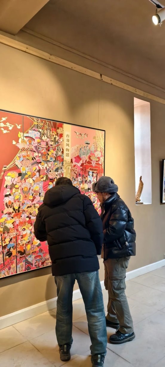 本次巡展延续了项目的核心特色,精选百余幅描绘黄河流域节气更迭、农耕劳作、民俗风情的农民画作品。画面色彩饱满,构图生动,洋溢着浓郁的生活气息与蓬勃的生命力。展览特别设置的数字化体验环节,使观众能够通过扫描二维码,沉浸式感受动态演绎的节气故事,实现了古老智慧与现代表达的完美交融。在高家坬窑洞美术馆这一极具地域特色的艺术空间内,质朴的农民画与厚重的黄土窑洞相映成趣,共同诉说着黄河儿女的文化自信与家国情怀。